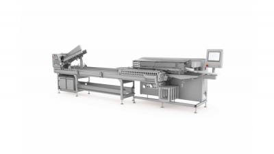 AIS 520自动装填系统 来自TVI的AIS 520自动装填系统能自动堆叠调理过或未调理过的切片产品,然后通过专利的传送装填系统自动将肉片放置入托盒中。